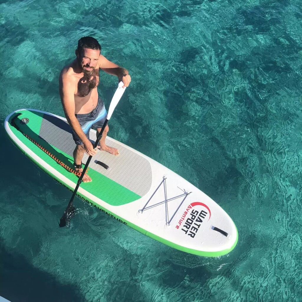 Un stand-up paddle débutant, large et stable, idéal pour les bases nautiques